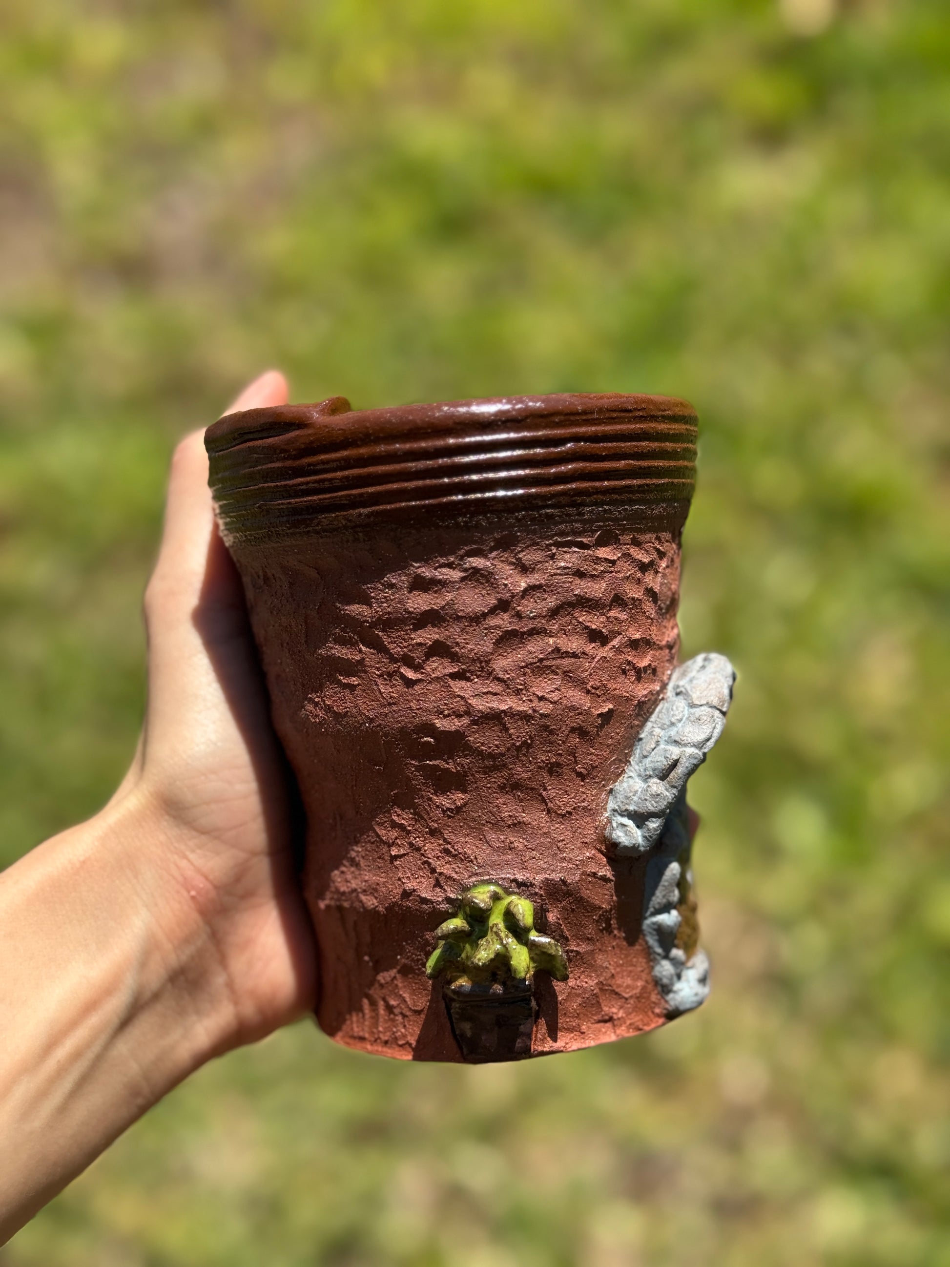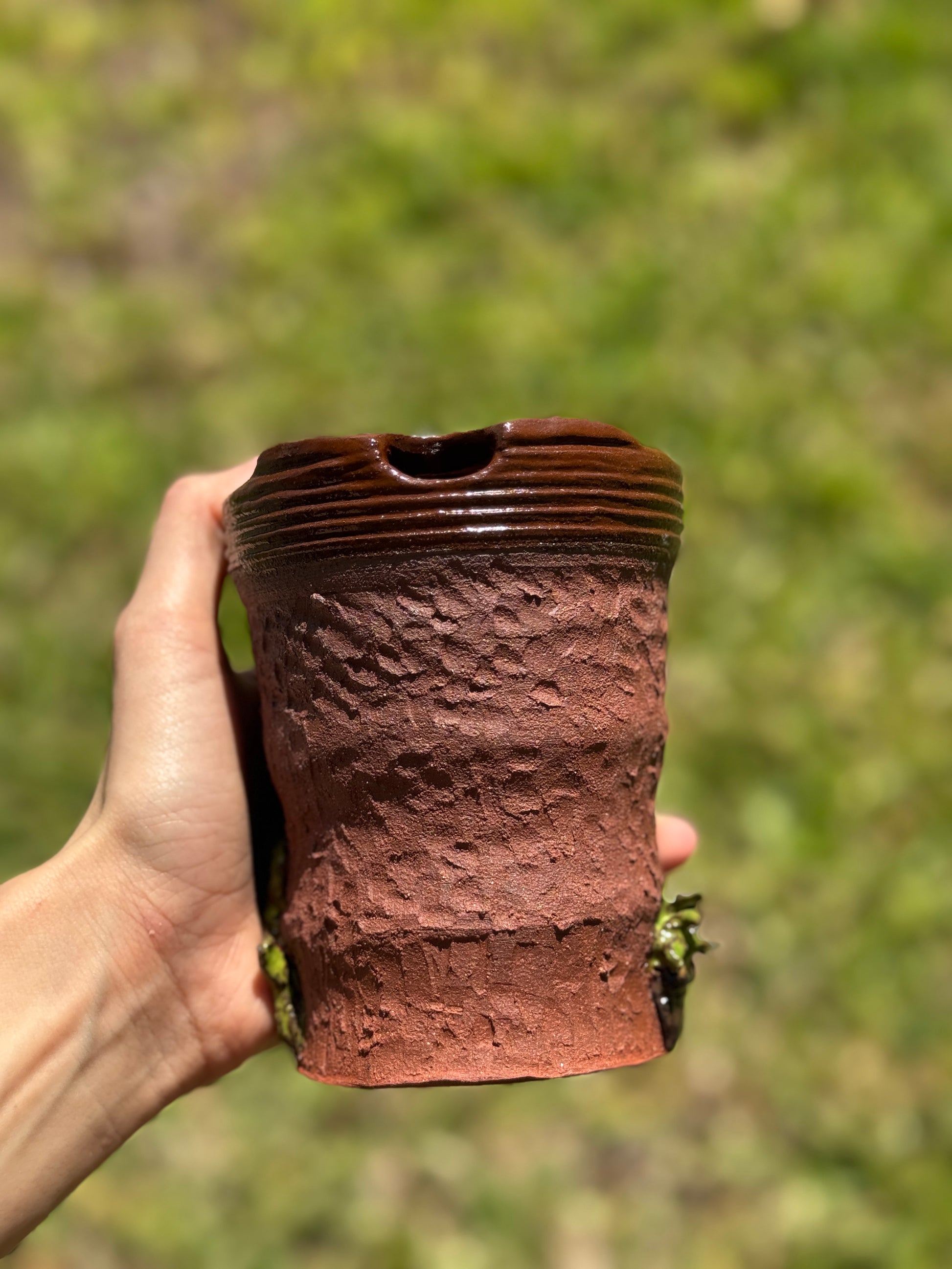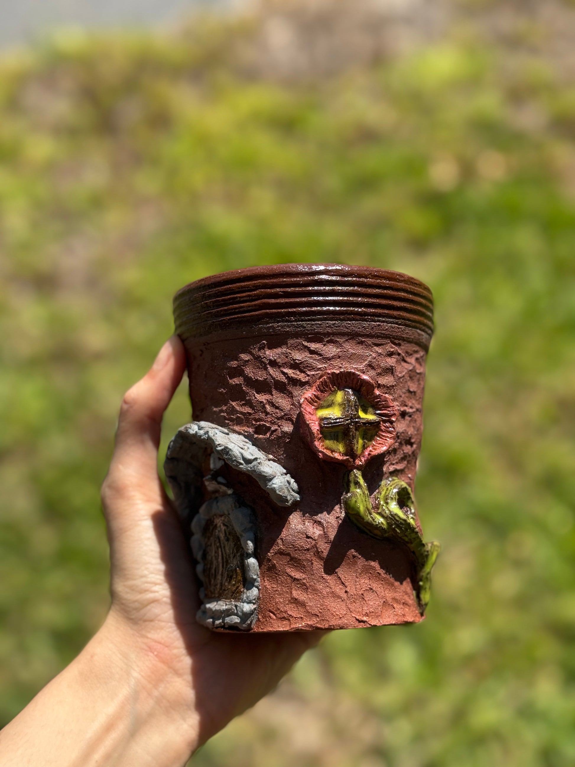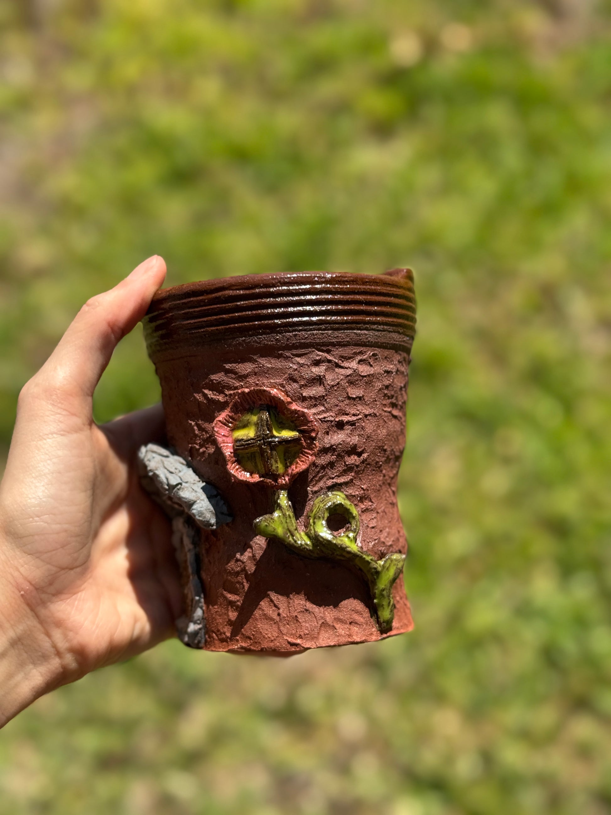 A fairy inspired wooden to go mug design featuring a flower shaped window. Combining natural charm with a touch of magic for your everyday adventures.