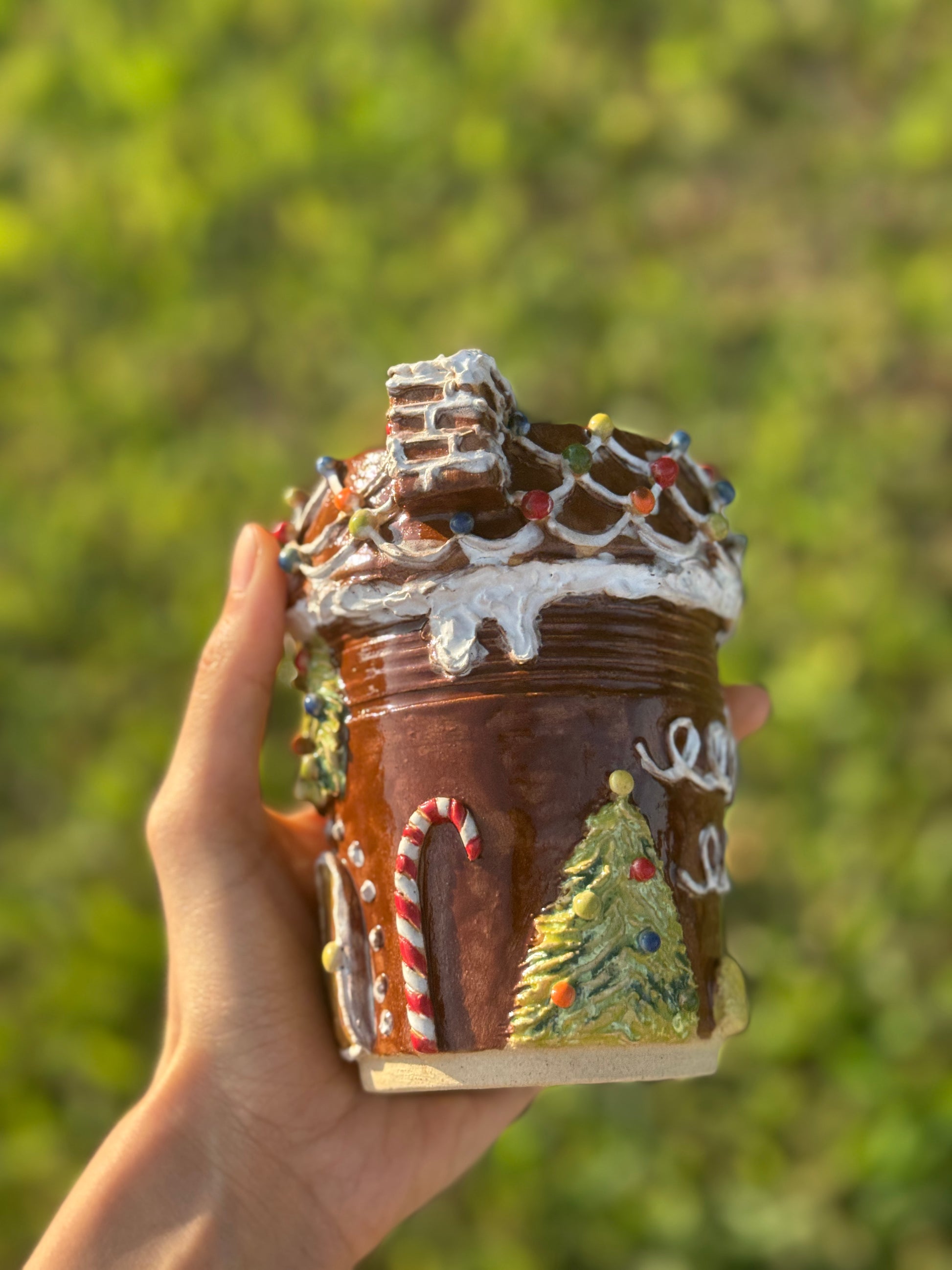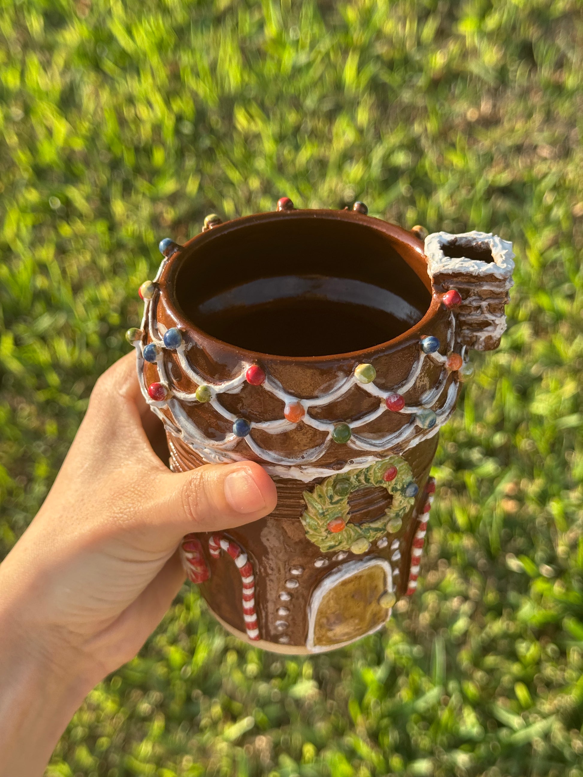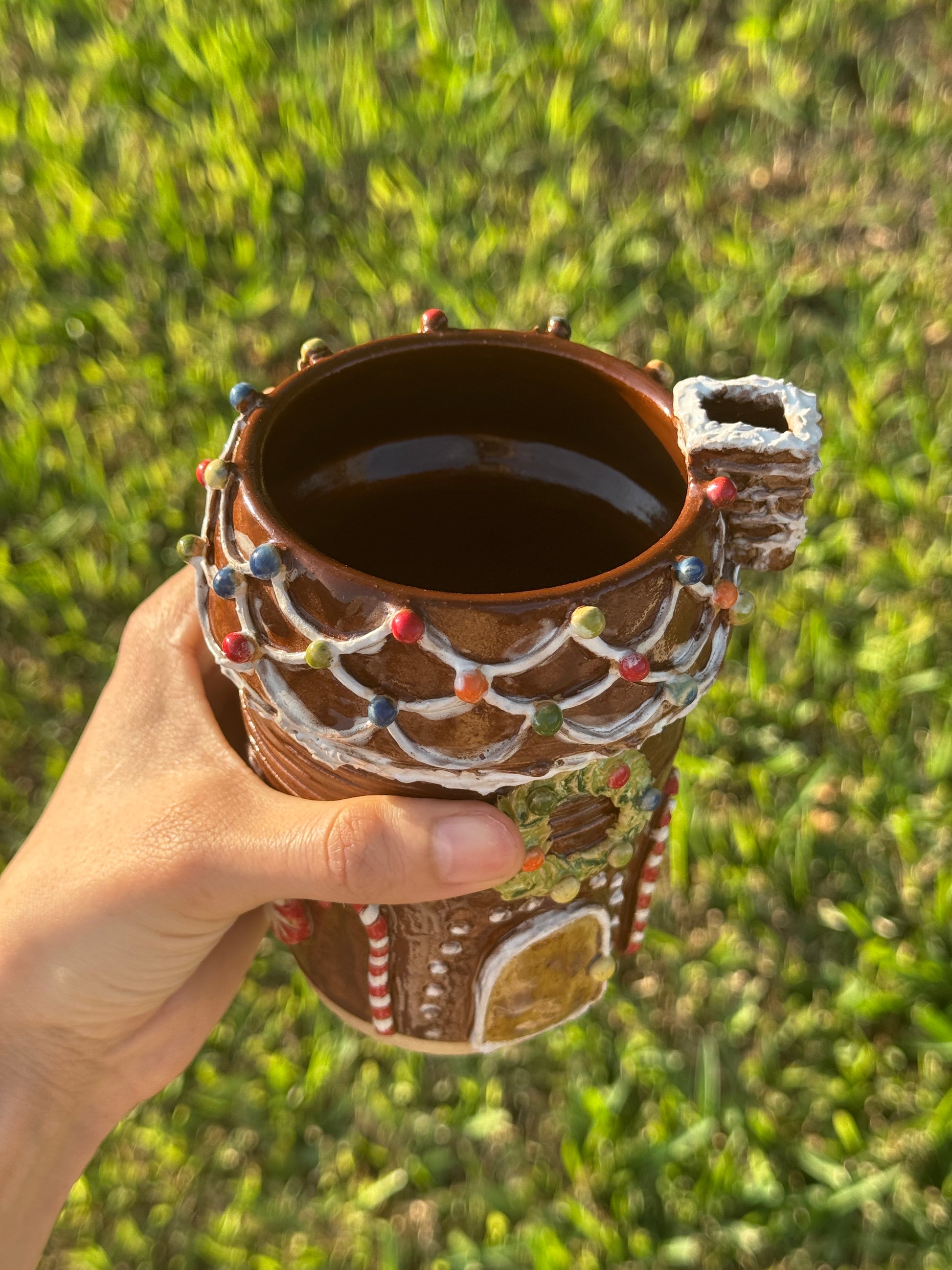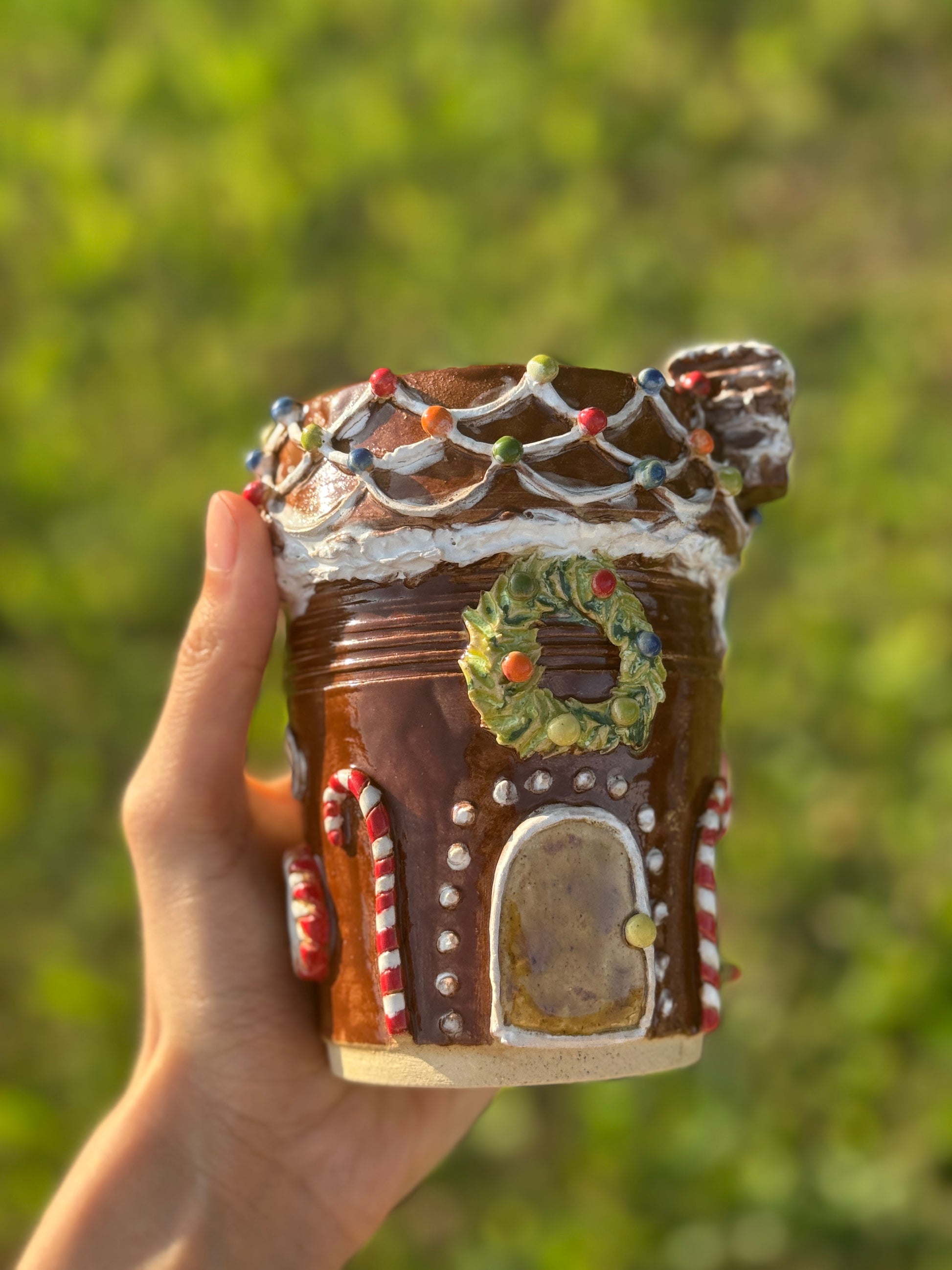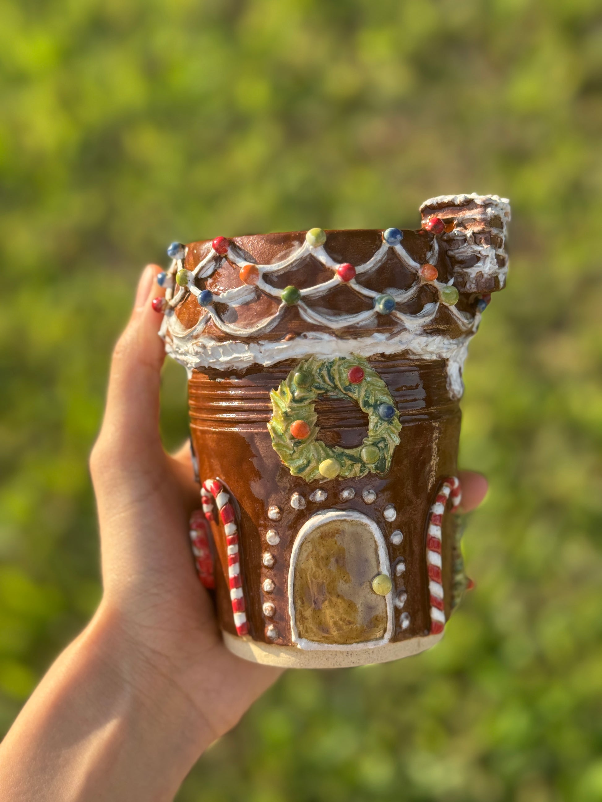 The bigger and wiser sibling of the other gingerbread cup! It's looking for a beautiful home to be cozy at this Christmas season!