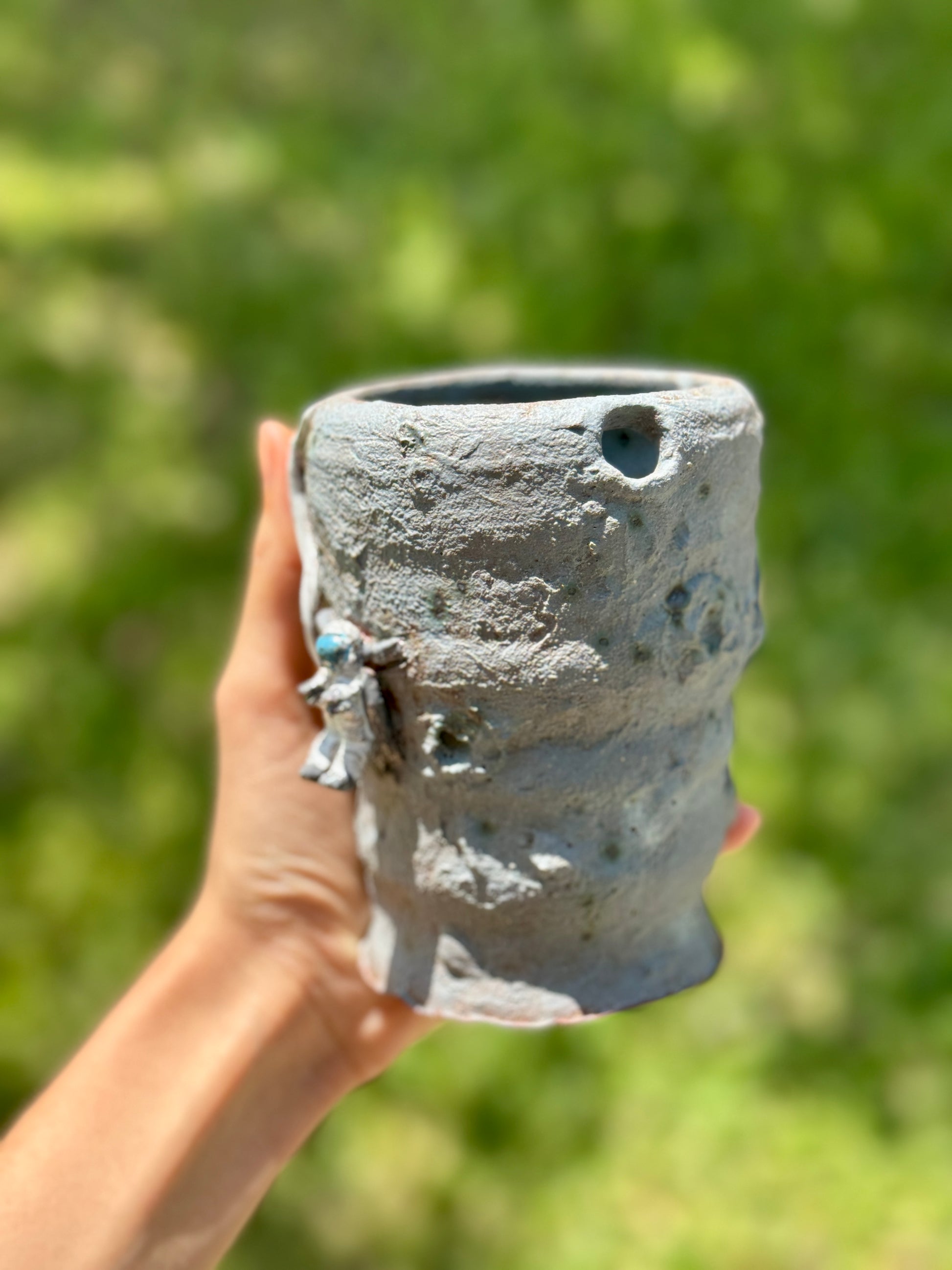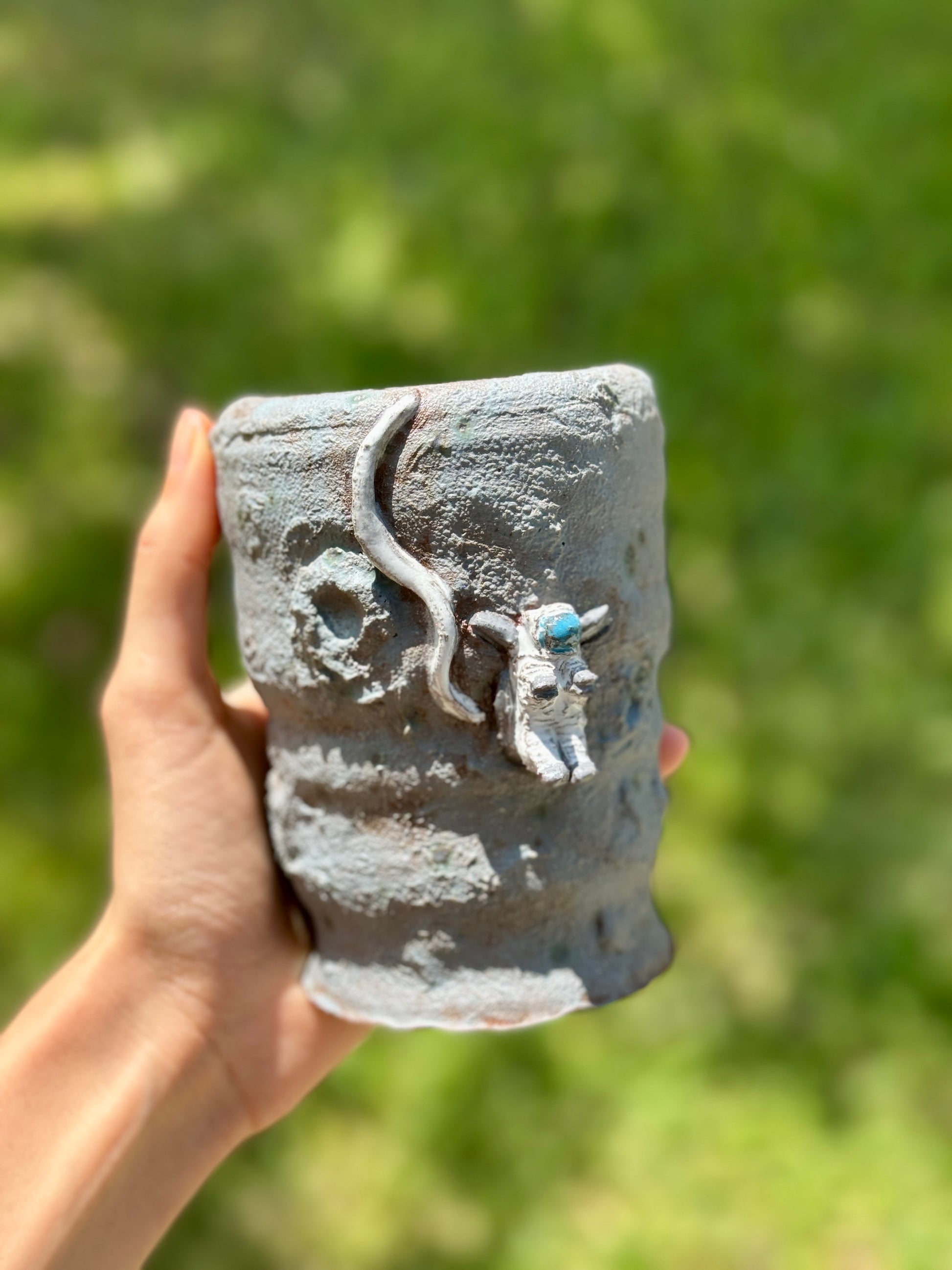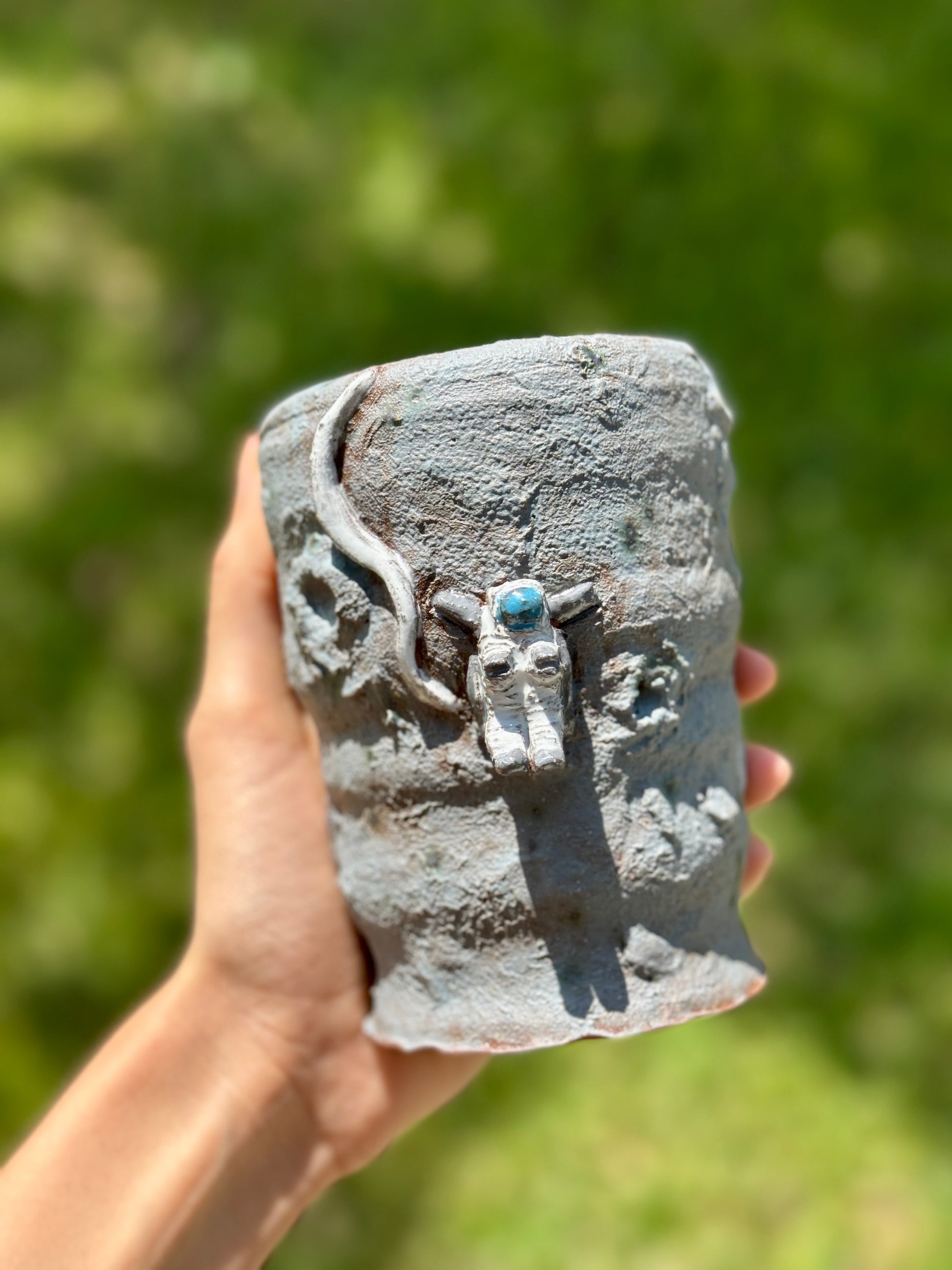 A decorative ceramic piece showcasing an astronaut on the moon, placing his flag in the surface. This piece is for decoration purposes only.