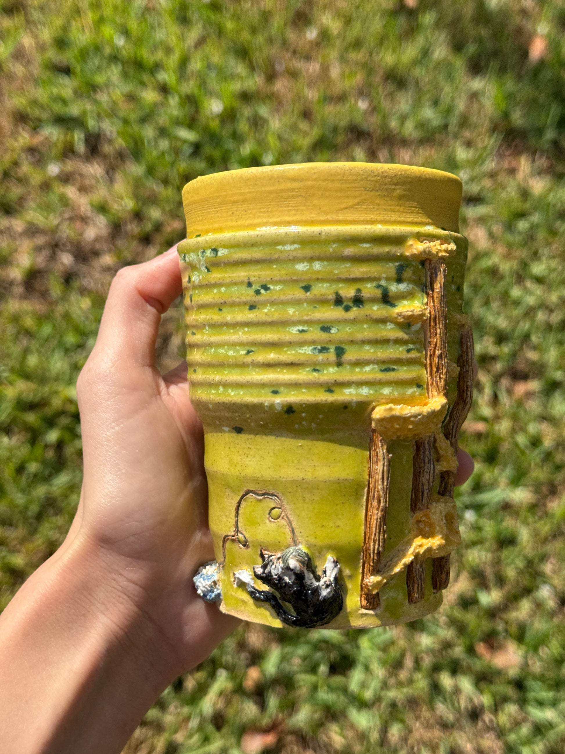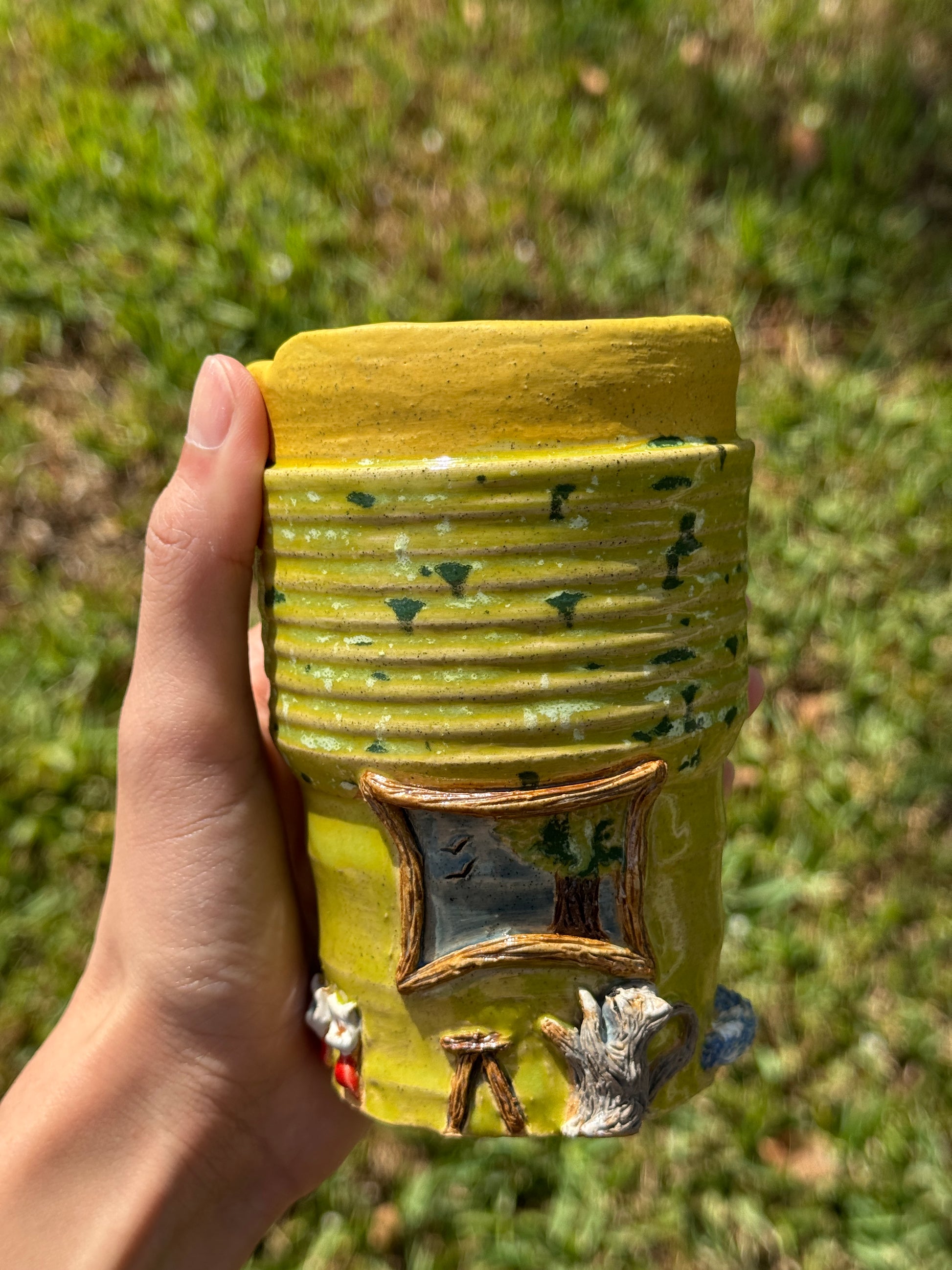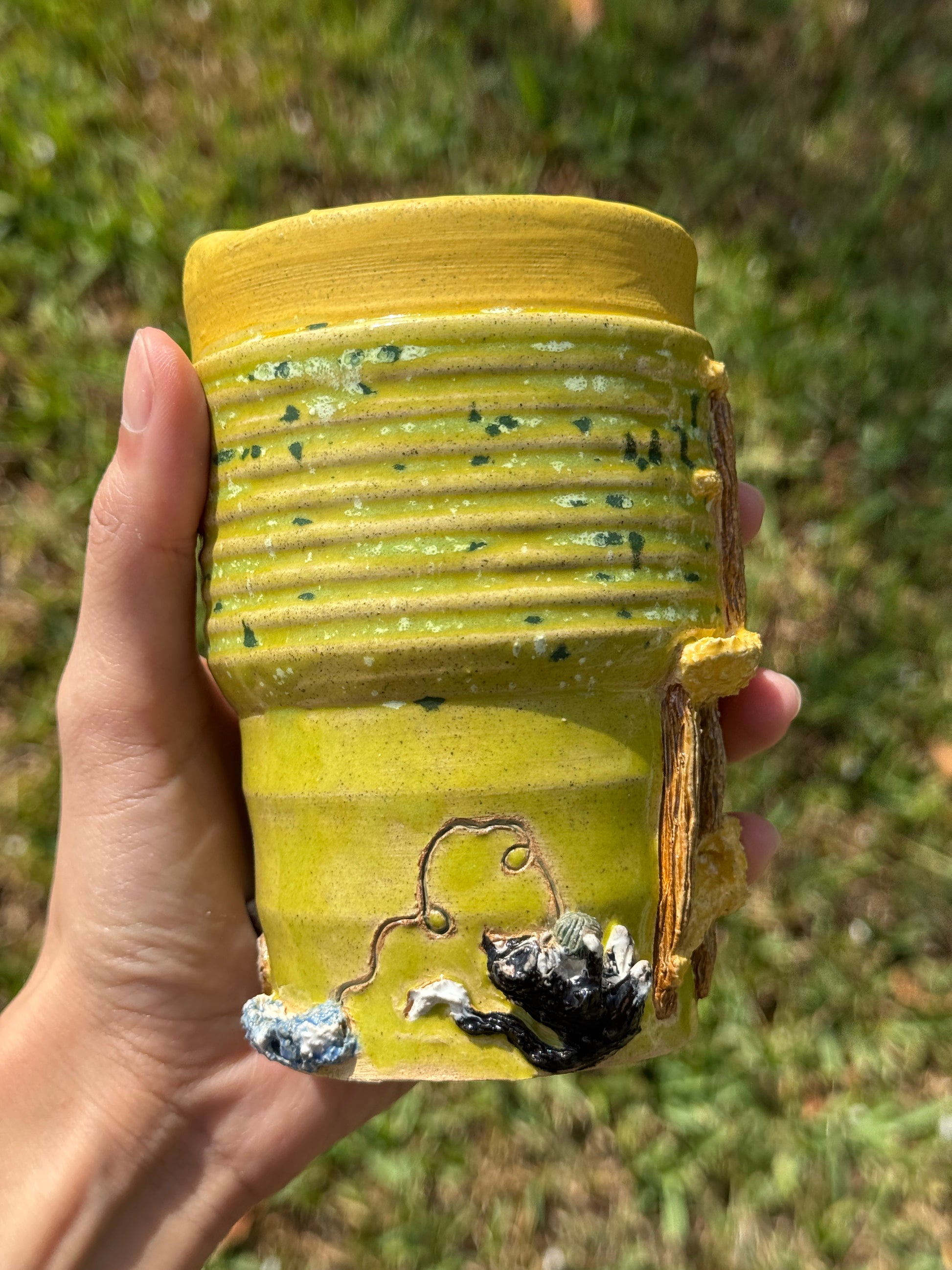 You love cats? I do too! Enjoy your everyday drinks in this adorable mug! Look around and enjoy all the details in this fun to go mug!