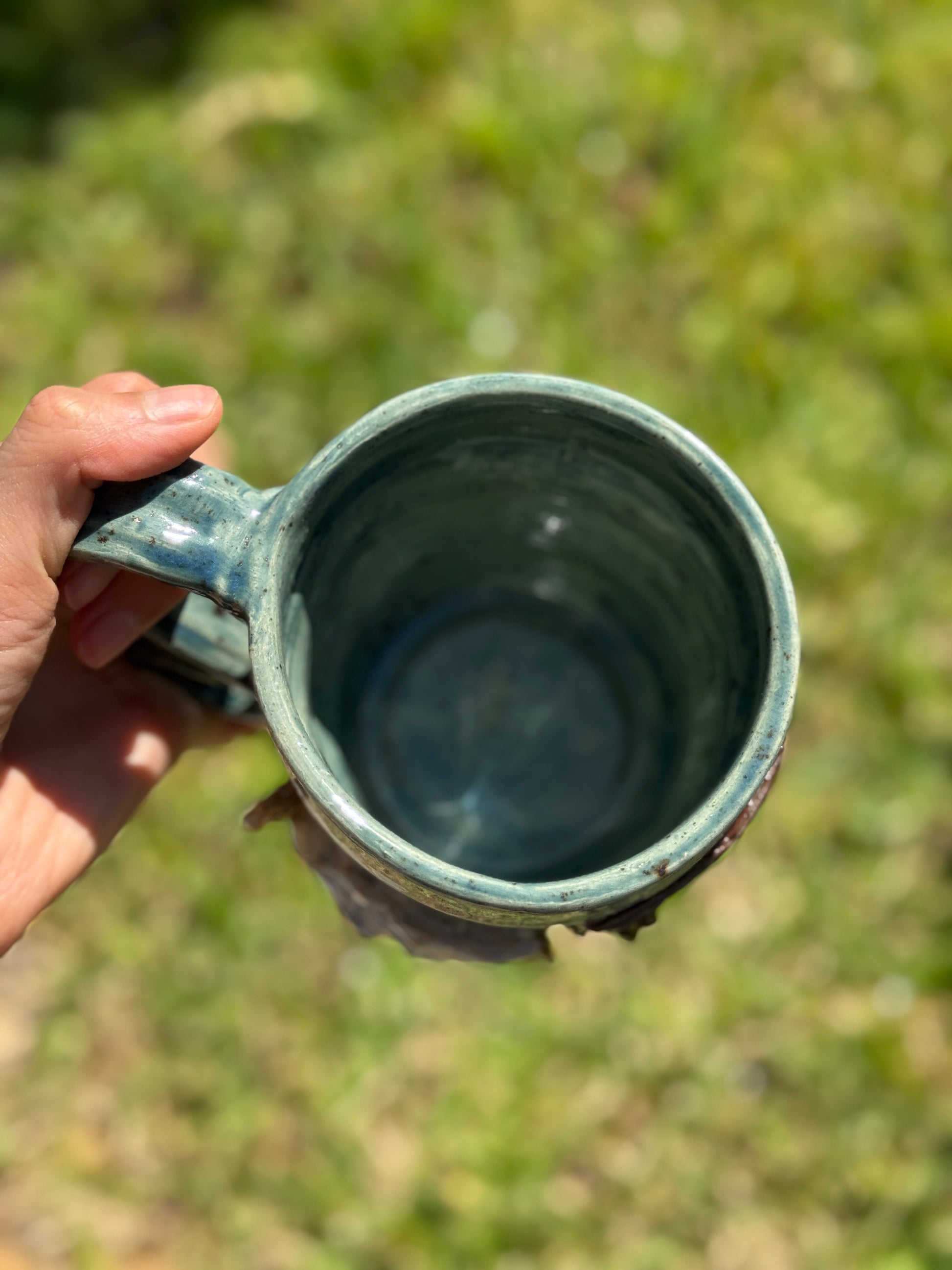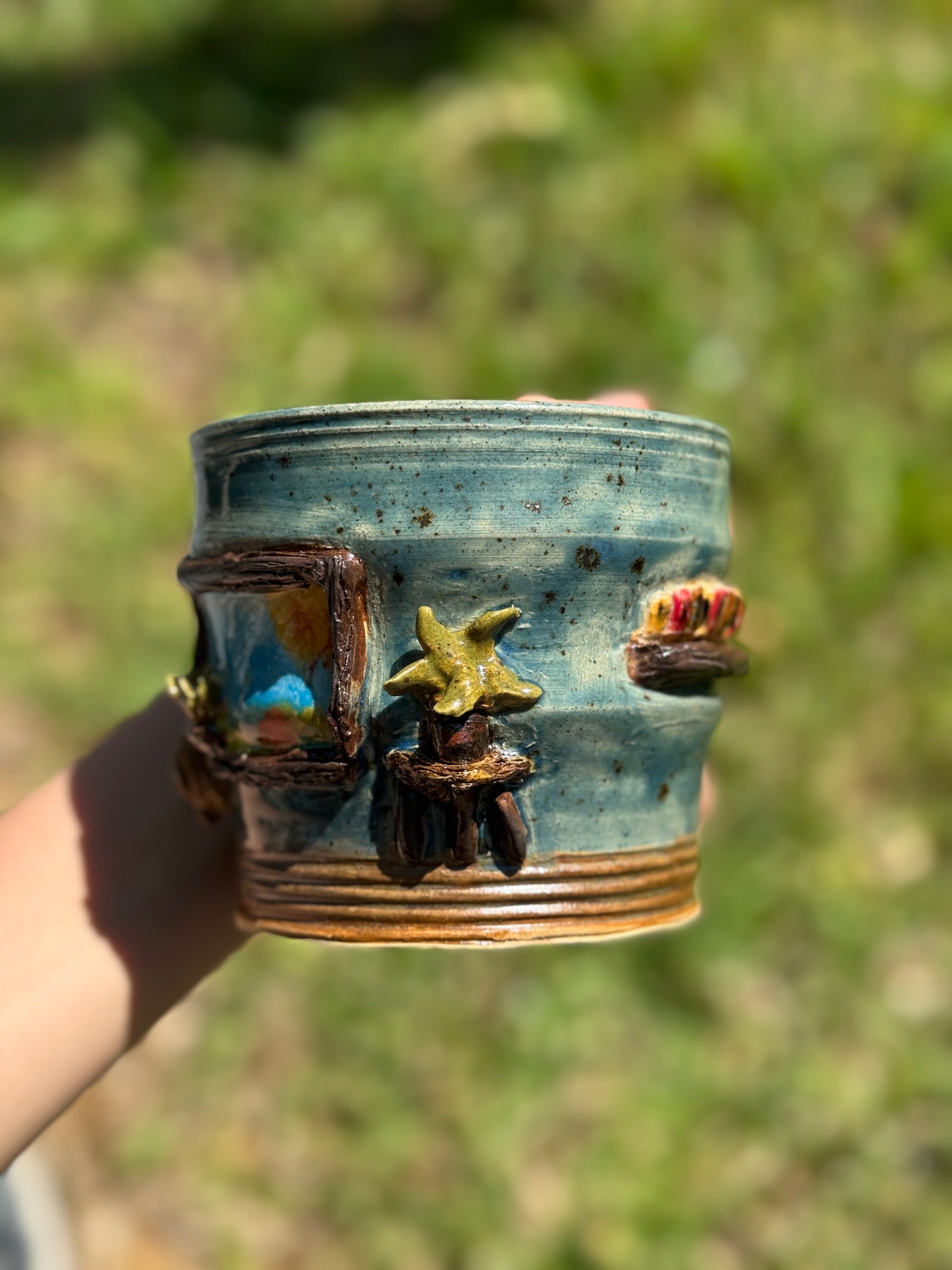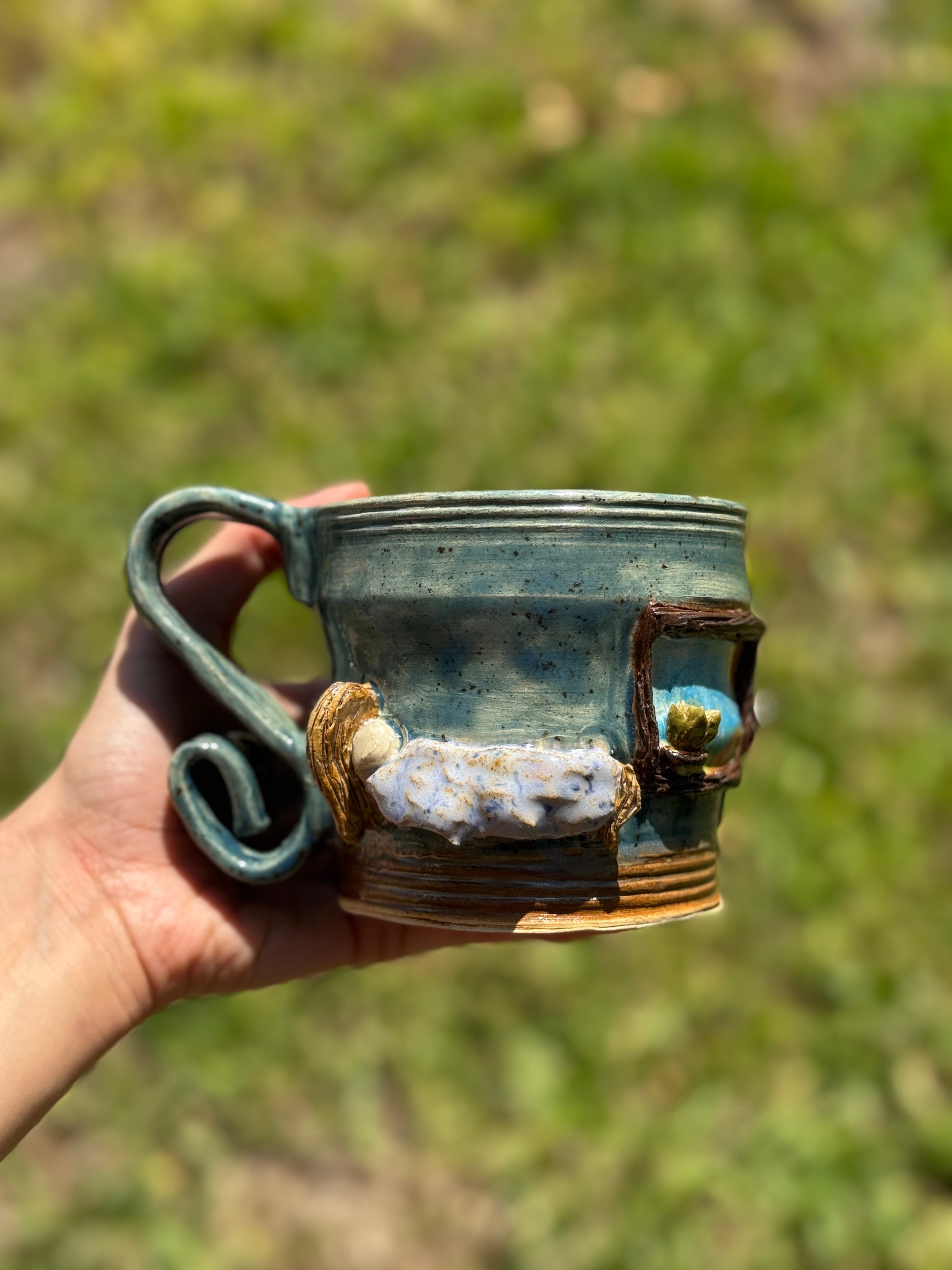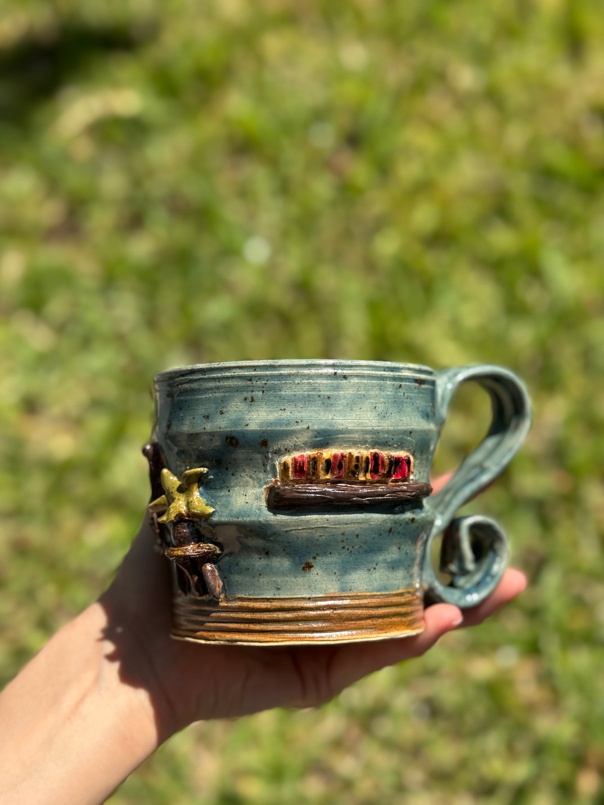 A cozy themed mug featuring a bedroom scene with a bookstand, a window view, and a potted plant. Perfect for lovers of quiet moments and warm spaces.