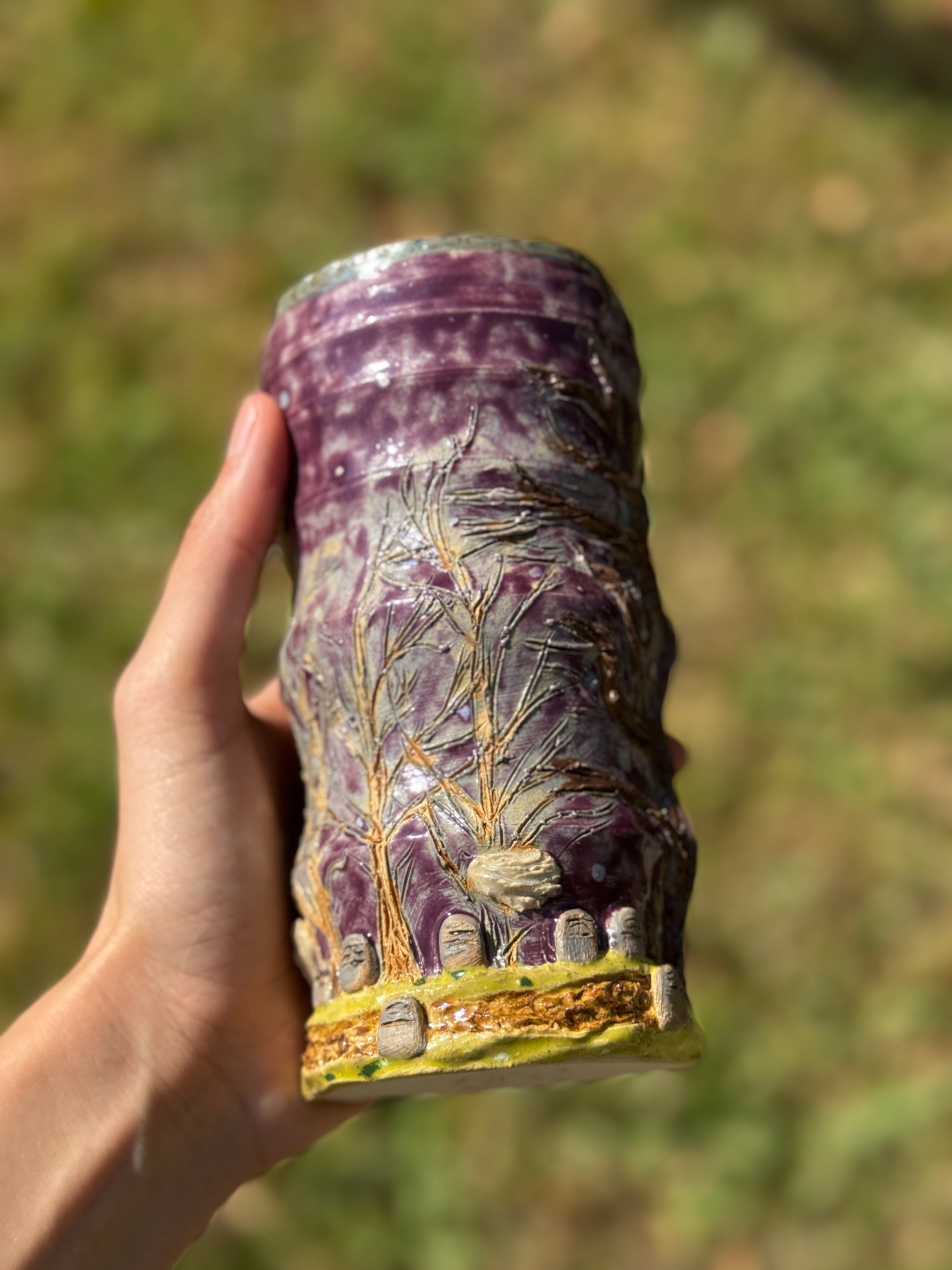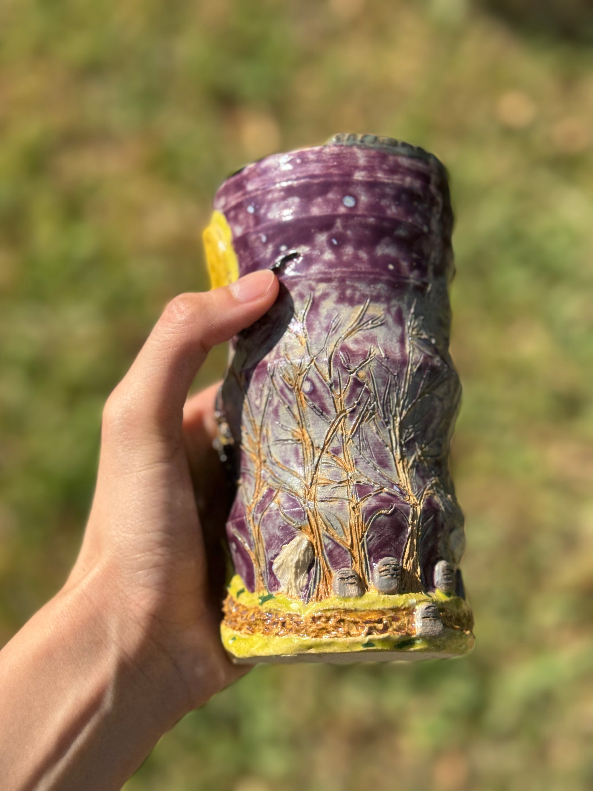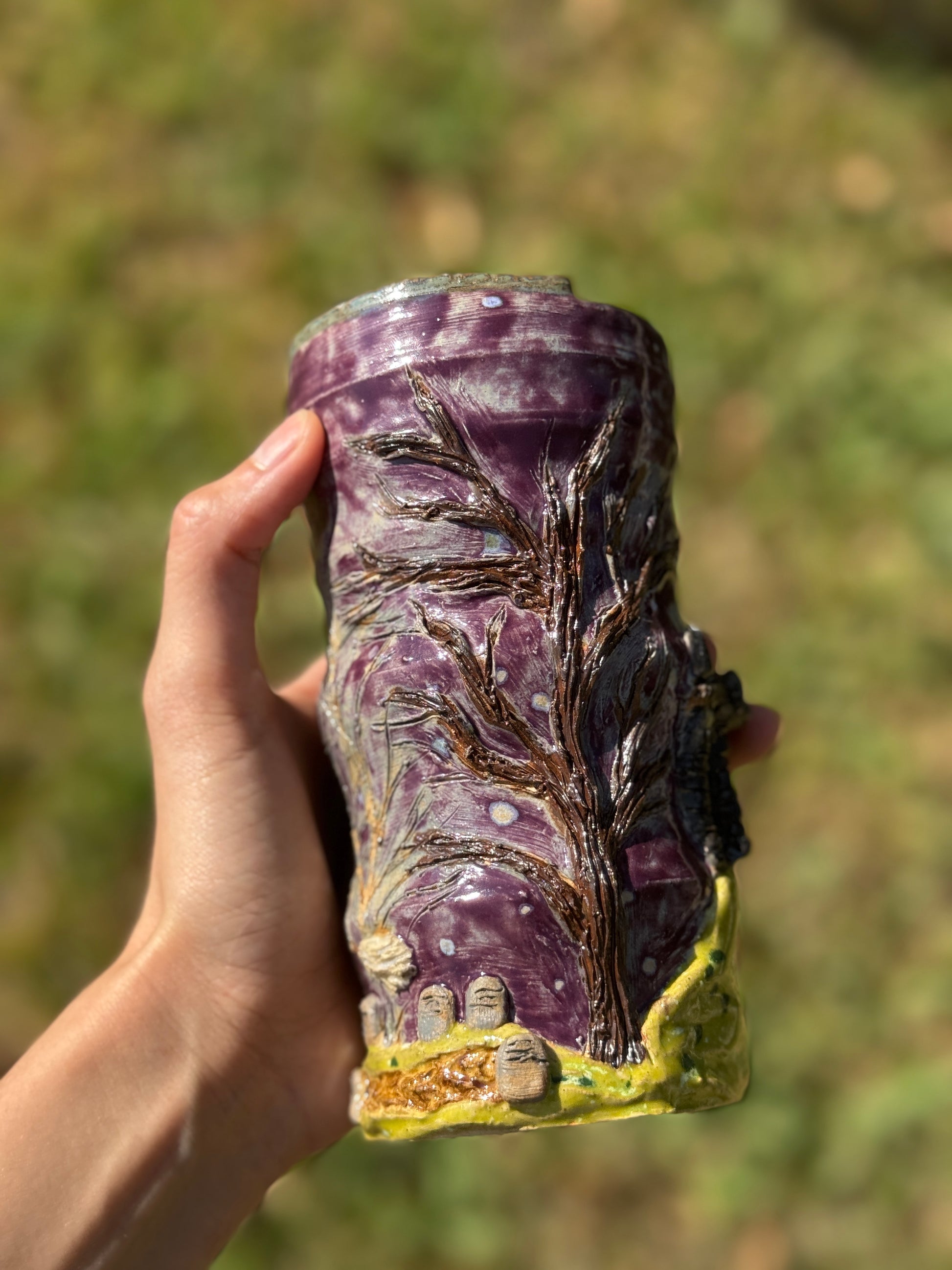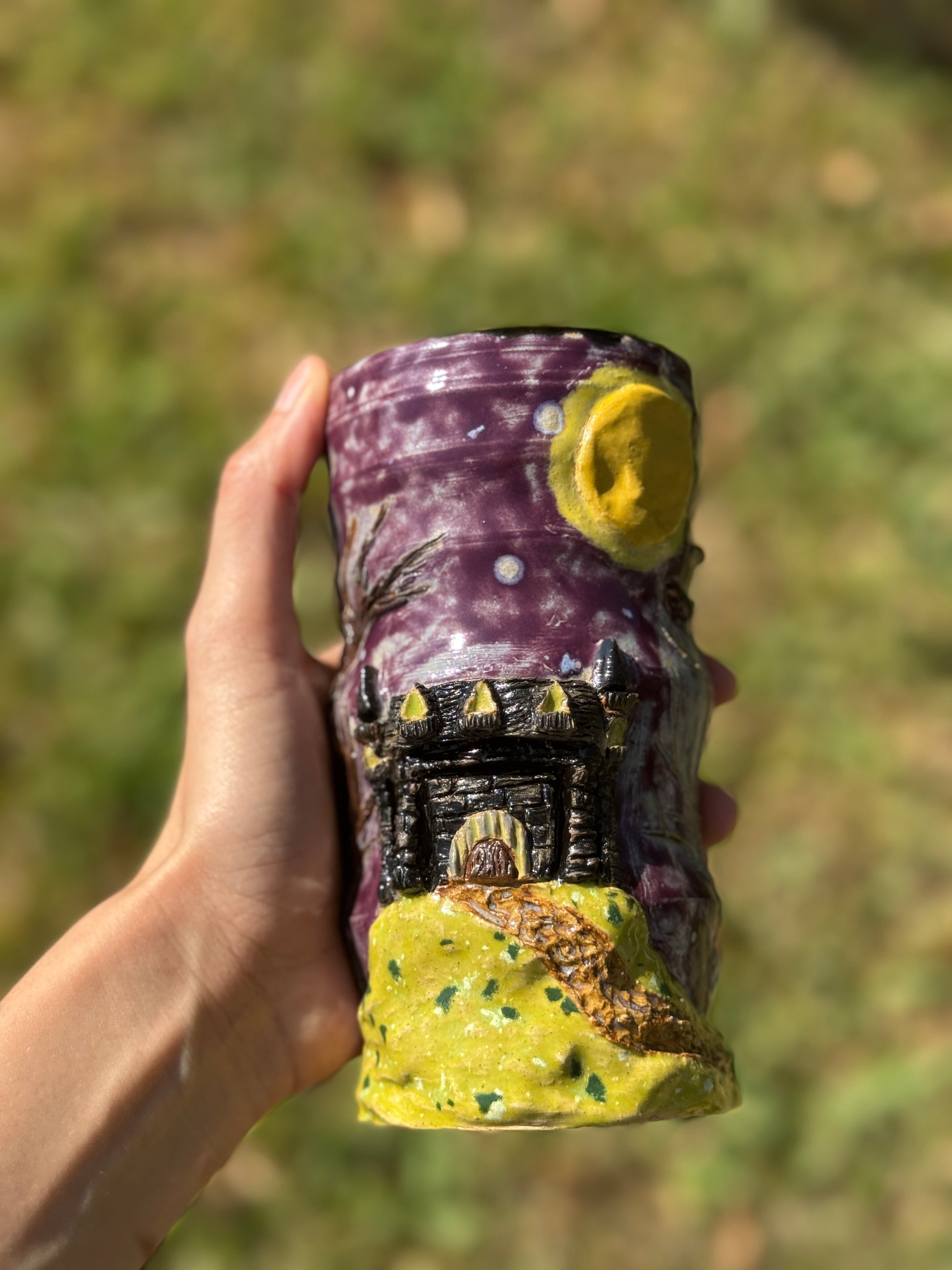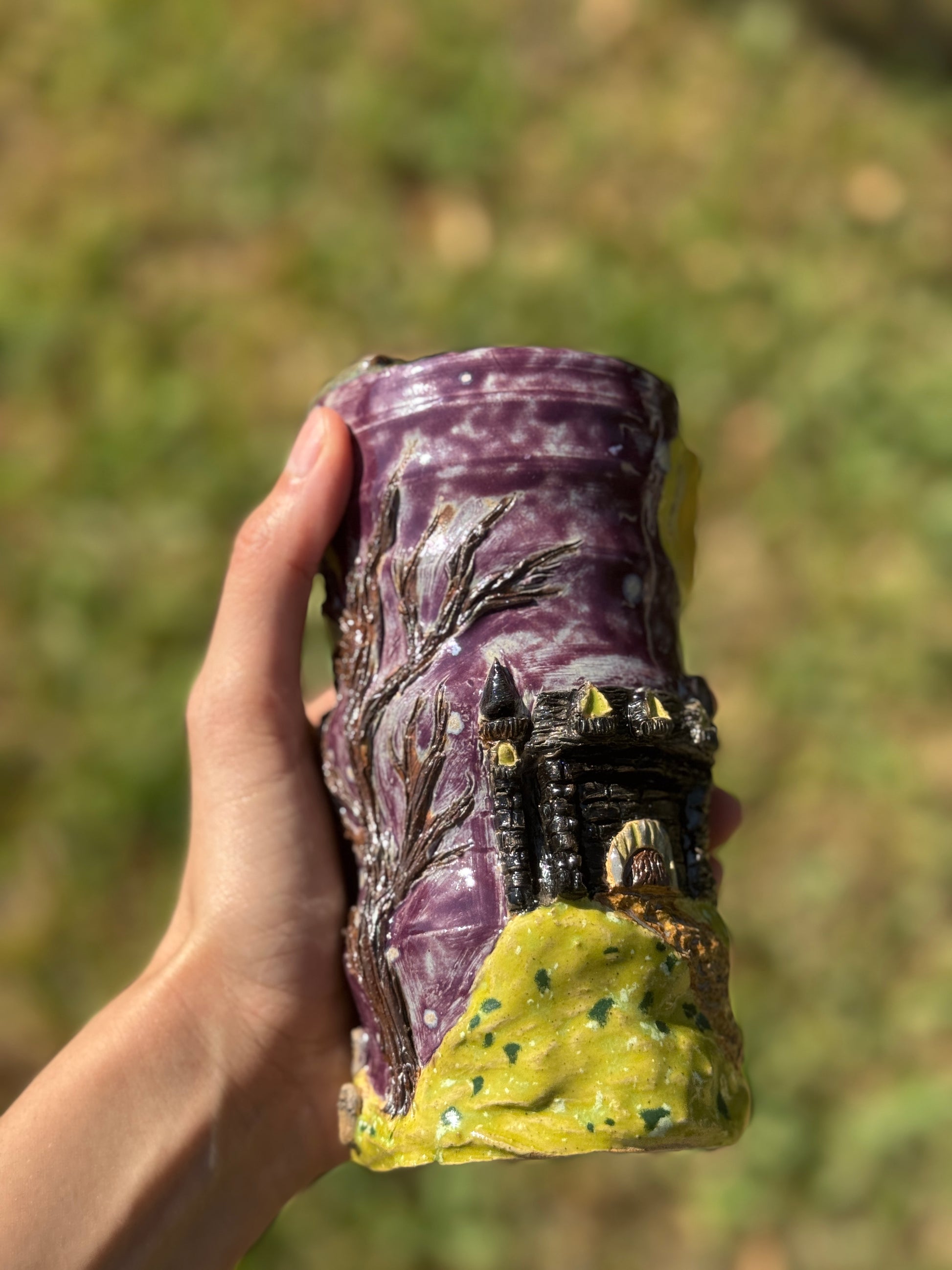A haunted castle next to a graveyard perfect to enjoy all your Halloween potions in this fun stoneware mug.