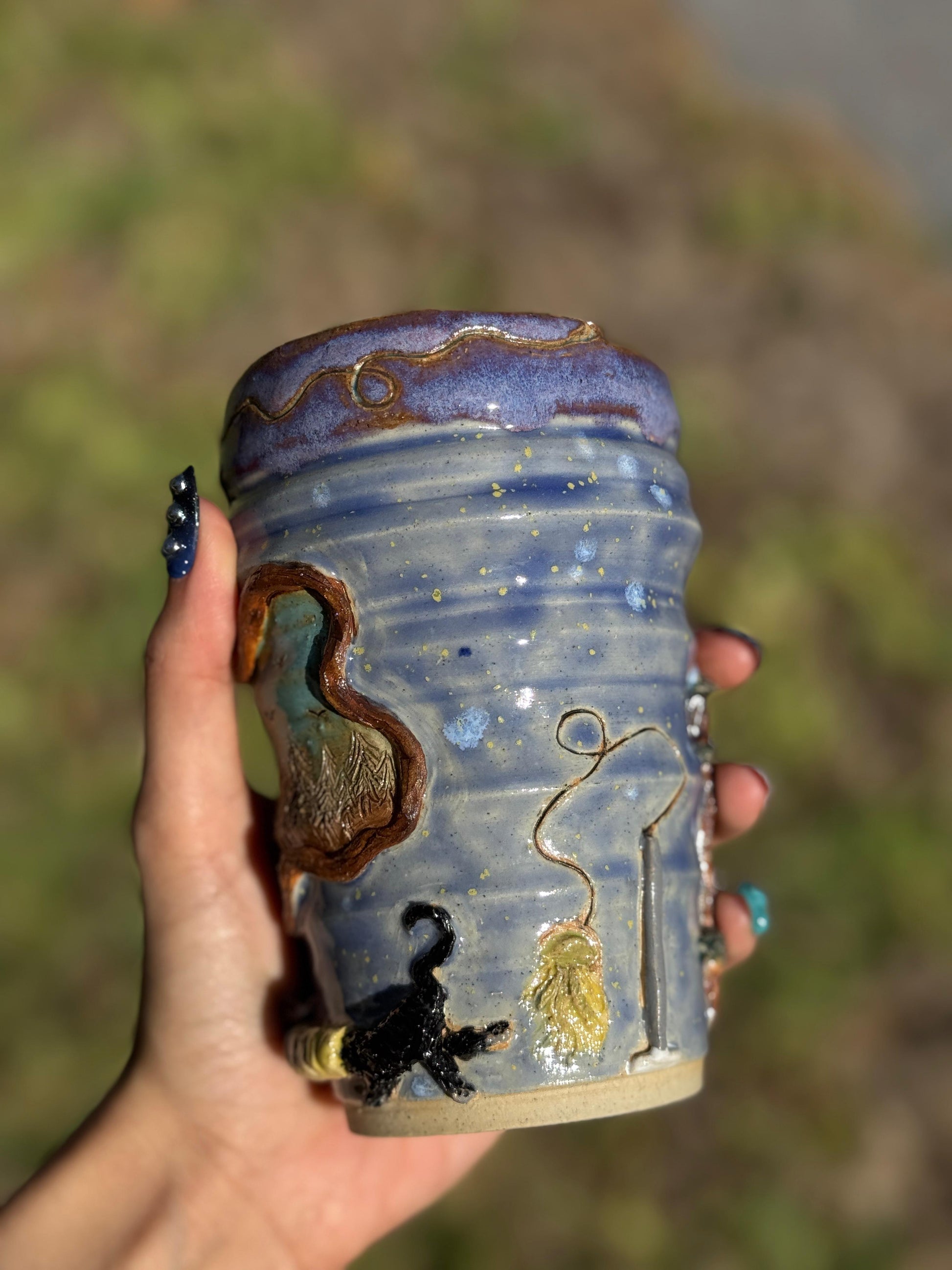 Are you a cat lover? I am too! You can find out what these lovely cats are up to in this whimsical mug! Perfect for any cat lover!